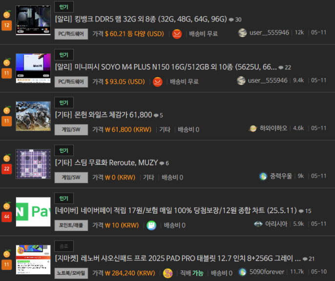 ▪ 클리앙/쿨앤조이/퀘이사존 - IT, 전자기기 등
